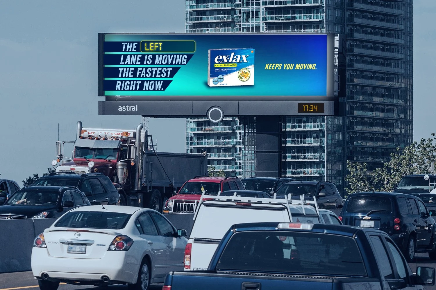 We all hate Toronto traffic. So we decided to make it useful and demonstrate how effective ex-lax is at moving things along. We proposed using real-time traffic data to help keep traffic moving with our handy lane assist.
